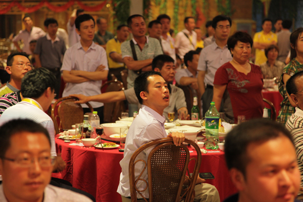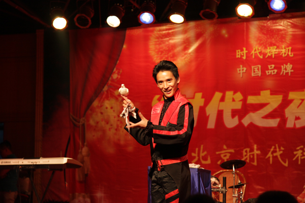 本次時(shí)代之夜活動(dòng)廳堂布置以紅色調(diào)為主,襯托出活動(dòng)熱烈喜慶的氣氛。宴會(huì)現(xiàn)場(chǎng)高朋滿座,勝友如云,宴席前面寬大的表演舞臺(tái)上精彩節(jié)目輪番上演。許多節(jié)目演到高潮的時(shí)候,觀眾都紛紛從餐桌旁站起來舉起手機(jī)拍攝那精彩的瞬間。激動(dòng)人心的抽獎(jiǎng)環(huán)節(jié)調(diào)動(dòng)了所有人的神經(jīng),大家都期待著大獎(jiǎng)能落到自己手中,但獎(jiǎng)品畢竟有限,來自某地區(qū)某單位的來賓抽中了最后的大獎(jiǎng)。一位外國(guó)朋友在抽獎(jiǎng)活動(dòng)中也成功中獎(jiǎng)。
