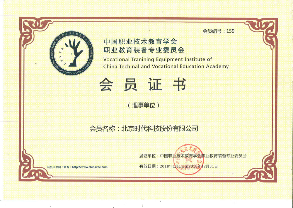 | 2018-01 | 中國職業技術教育學會職業教育裝備專業委員會會員證書 | 中國職業技術教育學會 |