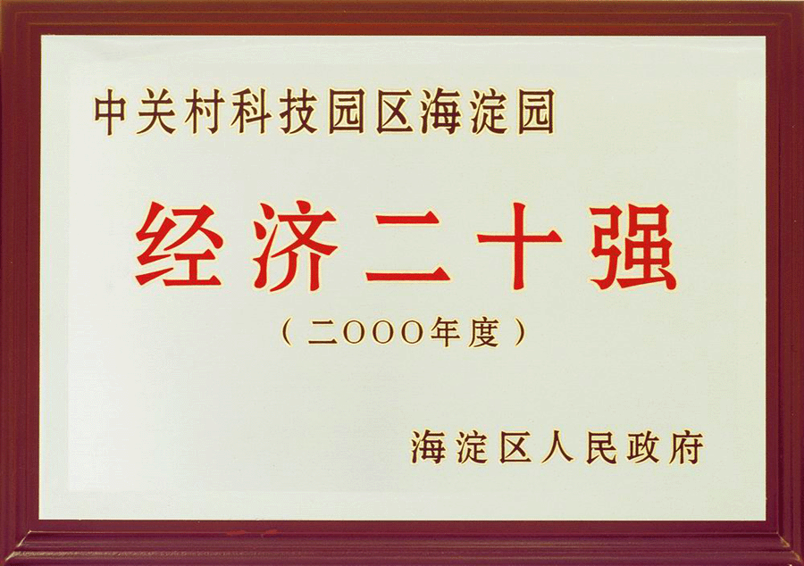 | 2002-04 | 中關村科技園區 2000 年度經濟二十強企業 | 海淀區人民政府 |