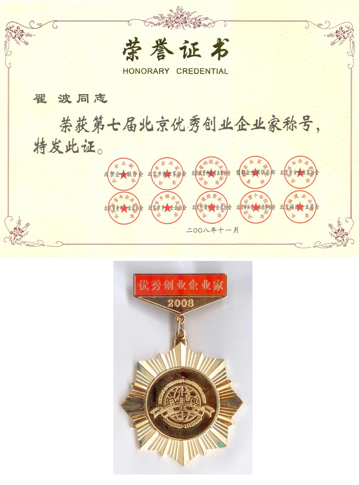 | 2008-11 | 第七屆北京優秀創業企業家 | 北京企業聯合會、北京企業家協會 |