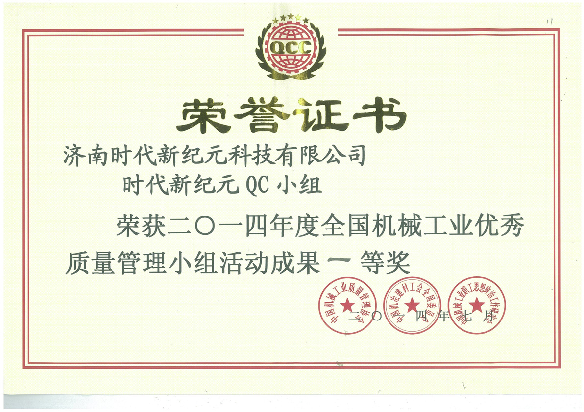 | 2014-08 | 2014年全國機械工業優秀質量管理小組獎 一等獎 | 中國機械工業質量管理協會 |