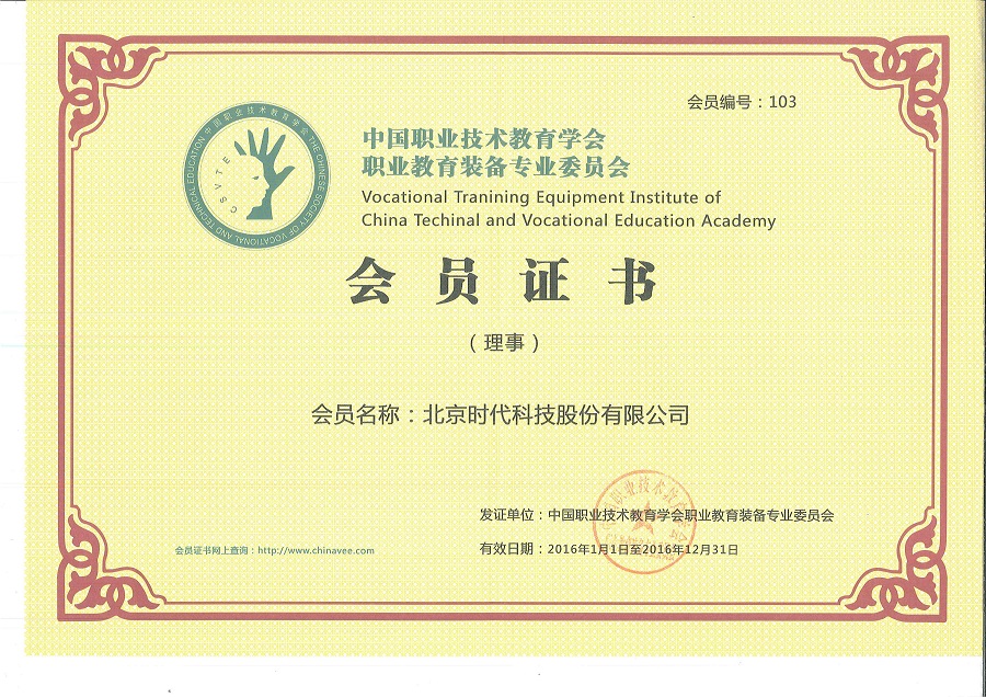 | 2016-03 | 中國職業技術教育學會職業教育裝備專業委員會會員證書 | 中國職業技術教育學會職業教育裝備專業委員會 |